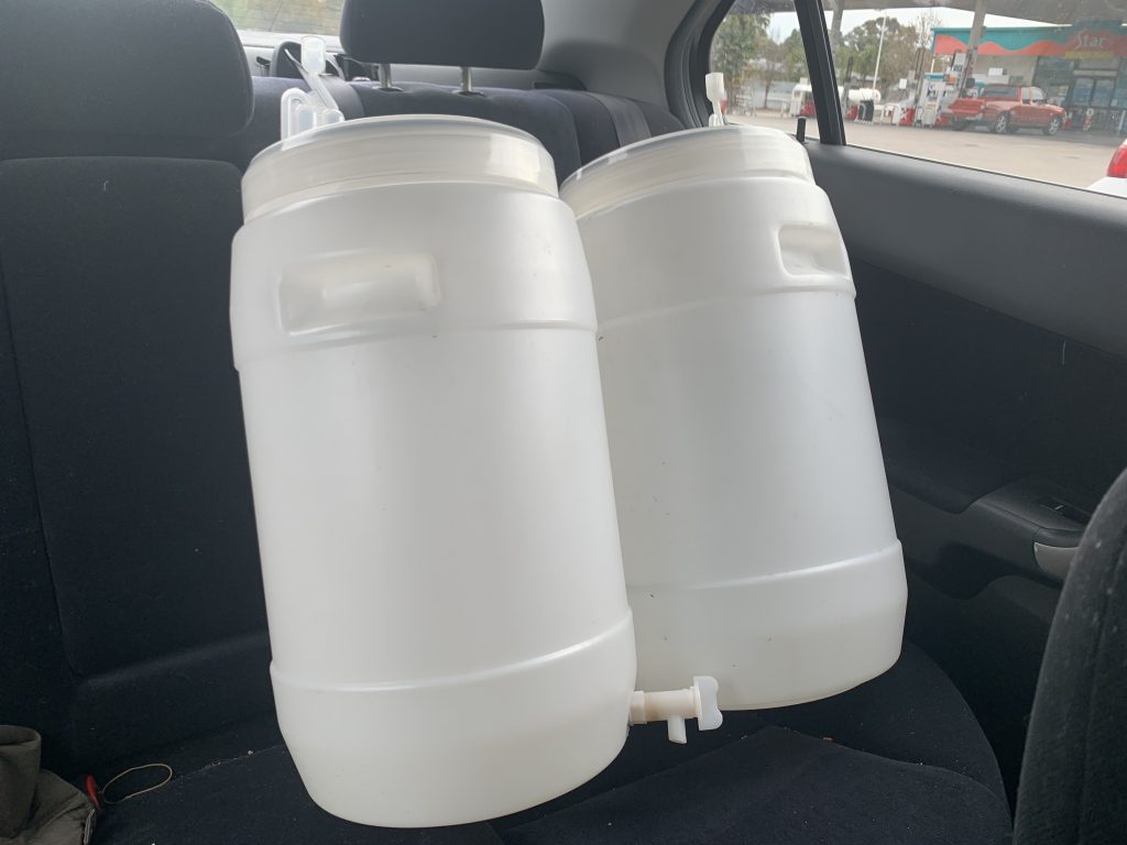 After looking around on Gumtree, we found two fermenters for sale for $60. They weren’t well-worn, and came with the taps and airlocks we needed. Brand new, we would look at around $100 for two of these so we figured we might as well grab them.
